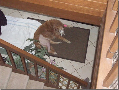 Four weeks recovery period and of course no stair climbing so I will have to keep her company downstairs.